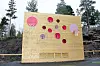 I de gummibelagte skråningene kryr det av unger i alle aldre som klatrer i tau og klatregrep. Det er støpt ned store steiner i gummibelegget, som er malt i mange forskjellige farger.