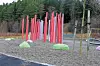 Det første man legger merke til på området er de knallgule og svarte skråningene i støpt gummi, samt fargerike «stolpeskoger«». Dette er grupper med impregnerte trestolper, i høyder fra to til fire meter.