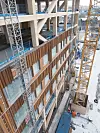 RVT er nå i gang med montering av veggelementer til Mjøstårnet.