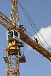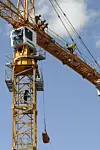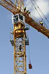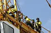 Tårnkranføreren var riktignok forespurt. Men han trodde det skulle skje to dager senere. Han visste heller ikke at han skulle ligge spent fast på en båre. Men firingen ned fra bommen vel 46 meter over bakken, var nervepirrende selv å se på, men gikk svært bra.