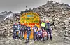 To ganger har Erik Sundheim krysset et av verdens høyeste fjellpass, Khardung La i Nord-India, på 5602 meter over havet. Her med reisefølget han kjørte sammen med i 2022. Foto: Privat