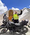 Erik Sundheim kjører motorsykkel i Himalaya på fritiden. Her krysser han et av verdens høyeste fjellpass, Khardung La i Nord-India, på 5602 meter over havet. Foto: Privat