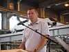Kongsvinger-ordfører Sjur Arnfinn Strand (AP) fikk æren av å foreta symbolske offisielle åpningen av massivtrefabrikken.