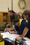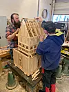 Her er Øyvind Mauren(fra venstre), Øyvind Jacob og Marton Laksesvela i sving med modellen. Foto: Sandra Birkenes