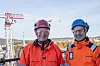 Administrerende direktør Harald Vaagaasar Nikolaisen i Statsbygg (til venstre) og konsernsjef Stein Ivar Hellestad i Skanska møttes onsdag for å markere signeringen av samspillskontrakt for forprosjektet på C-blokken.