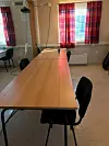– Videre har vi også hengt opp et kart over inndelingen av brakken, der er det markert plassering av stoler og antall personer samtidig i garderoben. På denne måten blir det enklere å holde anbefalt avstand. På ene turnusen er det inntil 14 personer her, derfor har vi delt opp slik at noe spiser på møterommet oppe og noen nede. De har også mulighet til å spise på ulike tidspunkt, sier prosjektingeniøren.