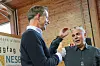 Byggmester Torstein Lium (t.h) var en av flere aktører fra byggenæringen som deltok på bransjetreffet for bygg- og anleggsfag på Nesbru videregående skole. Foto. Svanhild Blakstad