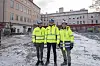 Seksjonsleder for spesialbygg i Oslobygg, Trond Blesvik (fra venstre), Oslobyggs prosjektleder Mathias Kolsaker og produksjonsleder Håvar Opsiøn i Vedal Entreprenør har brukt mye krefter på å holde rehabiliteringen av Sophies Minde utslippsfri.