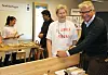 YRKESFAG: Håndverkets dag ble åpnet av ordfører Fabian Stang. Som takk for hjelpen fikk han en tommestokk av kommunikasjonssjef Kristin Brandt i Oslo Håndverk- og industriforening. (Foto: Svanhild Blakstad)