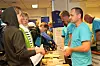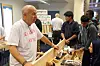 YRKESFAG: Håndverkets dag gikk av stabelen i Oslo 2. september, og 360 elever fra ungdomsskolen fikk prøve seg i praktiske og teoretiske håndverksoppgaver. Roger Nyborg sto på stand for Mesterbrev. (Foto: Svanhild Blakstad)