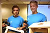TØMRERE: Vetle Moløkken og Oliver Gran går 2vg på bygg- og anleggsteknikk på Kuben yrkesarena og sikter seg inn mot lærlingkontrakt neste år. De sto på stand for tømrerfaget under Håndverkets dag, som gikk av stabelen i Oslo 2. september. (Foto: Svanhild Blakstad)