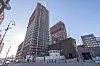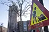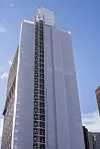 Stillaset på rådhusets østre tårn er nå kledd inn med duk.