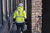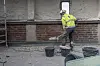 Thorendahl jobber nå med å renske bort puss på toppen av det østre tårnet.