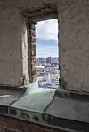 Opprinnelig kobberbeslag fra toppen av klokkespillet er allerede fjernet under tak-over-tak-konstruksjonen.