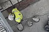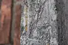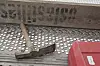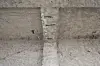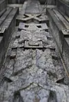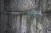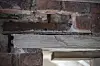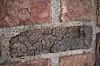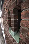 Verdigris fra de originale kobberbeslagene har også preget steinen.