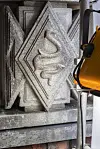 Når man kommer nærmere fasadedetaljene, kan man også se spor etter tidligere grep, som forgyllingen på enkelte av utsmykningene.