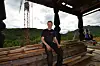 – Det tok vel to stokker før jeg var inne i det, sier han, og ser bort på den nå nesten helt ferdige storstua. August-solen varmer opp de mørke stokkene, og fyller luften med lukt av tre og tjære.