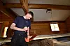 Den unge husbyggeren utelukker dog ikke at han en gang kanskje skal bygge sitt eget hjem, stokk for stokk; skåret, høvlet og finpusset, og tettet med saueull.