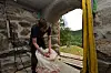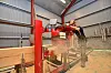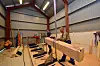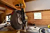 Sammen med faren har Mikkel jobbet med furustokkene i familiens verksted nede ved Tingvollfjorden. Her har stokkene blitt skåret til med den spesiallagde saga som Trond Hoem har bygget, her har kantene blitt høvlet ned, jevne spor har blitt skåret med meddrag, og storstua på Hoem har stokk for stokk blitt utformet i to etapper.
