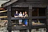 Hele familien har bidratt i lafteprosjektet. Mikkel (fra venstre), Gaute, Therese og Trond Hoem har alle lagt ned mye arbeid i storstua på Hoem.