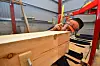 Å få til jevn og flat topp og bunn på på de runde stokkene viste seg tidlig å bli en utfordring for den unge lafteren, og pappas løsning med en planke utstyrt med pennestreker ble ikke helt godkjent.