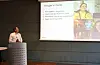 Anne Gretland, CEO i Fotoware presenterte en rekke myter om kvinner i manndominerte yrker. Foto: Svanhild Blakstad