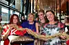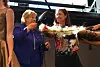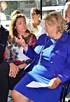 Sammen med NHO-direktør Kristin Skogen Lund, klippet Solberg over «snoren» som frisørstudentene ved Kuben hadde forberedt.