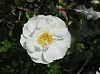 ‘Schneezwerg’, hvit med dekorative støvbærere, middels søt og krydret duft, blomstrer fra andre uke i juni til midten av juli, deretter med korte pauser til frost. Om høsten har den blomster og nyper på samme tid, H6. Foto: Haldis Myhre Tvete