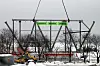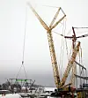 I disse dager løftes de enorme fagverksdragere av stål på det spektakulære bygget. Til denne jobben trengt det skikkelig utstyr