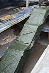 En trapp i furu er en av installasjonene i Livsvitenskapsbygget som har fått ekstra beskyttelse under uværet. Foto: Sindre Sverdrup Strand