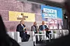 Leder av den ukrainske medlemsorganisasjonen for entreprenører Lev Partskhaladze (fra venstre), leder for det statlige organet for gjenoppbyging og infrastrukturutvikling i Ukraina, Mustafa-Masa Nayem og leder for den europeiske entreprenørorganisasjonen FIEC, Kjetil Tonning i paneldebatt.