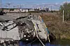 Brua over elven Irpin skal ha blitt bombet av russerne. Den ødelagte brua bidro til dekning under evakueringen av byen. Foto: Confederation of Builders of Ukraine
