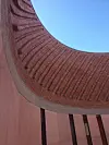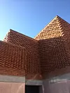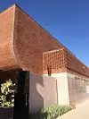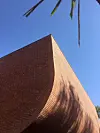 Det røde museet er bygget med betong, terrakotta, og lokal marmor og stein. Bygget er tydelig inspirert av marokkanske farger og glir fint inn nærmiljøet.