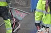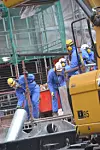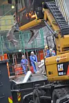 Rundt 100 mann fra fire entreprenører jobber fremdeles for fullt med rydde- og saneringsarbeidene i Regjeringskvartalet. (Bildekarusell)