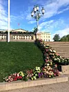 Kongeparets 80-årsfeiring vil prege Oslo tirsdag og onsdag. Uterområdene ved Slottet er blomsterpyntet til feiringen.Foto: Svanhild Blakstad