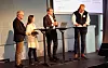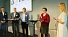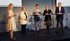 F.v. Torstein Fjogstad, administrerende direktør i Fjogstad Hus, ordfører i Bodø kommune Odd Emil Ingebrigtsen (H), Daniel K. Siraj, konsernsjef i OBOS og statssekretær Nancy Charlotte Porsanger Anti (Sp) i Kommunal- og distriktdepartementet. Foto: Arve Brekkhus