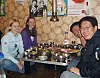 Etter omvisningen snørte vi på oss joggeskoene og tok en løpetur i den lille byen. Om kvelden var vi på en tradisjonell restaurant og spiste på ekte koreansk vis. Bordet var ikke mer enn 30-40 cm høyt, og i tråd med gammel koreansk skikk, satt vi på gulvet og spiste med pinner. Det ble servert mange sterke retter, og vannglassene våre ble hyppig tømt. Mens Mr. Ham svelget to hele grønne chili og påstod at det ikke var spesielt sterkt, fikk vi nærmest heteslag av mer vanlige retter. Godt var det da at kjøttet ikke var krydret. Da risen kom mot slutten av måltidet, ble den svært populær hos Merethe og meg.