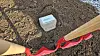 Første spadetak med spade som viser Ålesund, Sula og Giske sitt tette forhold når det gjeld drikkevatn. F.v., Birgitte Valderhaug, senioringeniør Sula kommune, Eva Vinje Aurdal, ordførar i Ålesund og Hans Olav Naas, einingsleiar teknisk Giske.