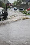 GD.no melder at vannet nedover mot bebyggelsen på nedsiden av Gudbrandsdalsvegen - og ut i Fåberggata. Også Hammersengvegen skal også være fullstendig rasert av vannmasser.