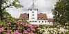 Hagen er plantet til med stauder og blomstrende busker som rhododendron og syriner.