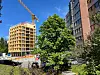 I Røverdalen i Gjøvik sentrum bygger Veidekke 249 studentboliger for SiT. Boligene skal være innflyttingsklare til studiestart i 2026. Bildet er fra midten av mai.