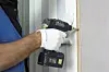 Platen festes med skruer (BKF 4,2x35) i en avstand på cirka 15-20 centimeter. Juster kraften på drillen så skruehodet ikke dras tvers gjennom platen. På skrukanten er den ideelle plasseringen av skruene markert med en tynn strek.