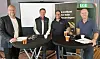 Programleder Christian Aarhus, administererende direktør Sverre Molvik i Selvaag Bolig, konsernsjef i OBOS, Daniel Kjørberg Siraj og programleder Frode Aga. Foto: Arve Brekkhus