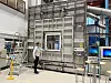 Slagregn er en stadig større utfordring for bygningers tetthet. Da er det viktig med solide bygningselementer som tåler klimaet det skal stå i. Her viser forskningsleder Lars Gullbrekken hvordan vindusprøving foregår i testkammeret hos SINTEF/NTNU. Foto: Kathrine Nitter/SINTEF