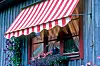 Markiser og parasoller er laget av tekstil som er behandlet for å tåle et langt liv utendørs. Etter en tid kan de allikevel anta enn grønnaktig tone eller få sorte prikker.