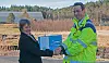 Adm dir Anita Winsnes i Miljømerking overrekker adm dir Johan Bruun i NCC Bolig en lisens til å benytte Svanemerket på boligprosjektet LonaParken som NCC står bak i Åsane i Bergen. (