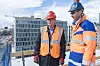 Skanskas konsernsjef Anders Danielsson og Skanska Norge-direktør Ståle Rød på besøk på byggeplassen.
