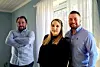 Daglig leder Erling Berven Holstad (fra venstre), boligrådgiver Marianne Holm-Johansen og eier Jim Holm-Johansen i i den nye Archihus-forhandleren