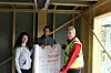 Elisabeth Jelstad, Lars Gullbekken og Jørgen Young med den nye dampsperren i testhuset i Wallyskogen på Fauske.