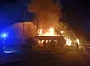 – Bygget er helt brent ned. Det er kun noen murvegger og et stupebrett som står igjen. Det brenner litt ennå, så brannvesenet kommer til å bli der en stund framover, sier operasjonsleder Jøran Solheim i Sørvest politidistrikt til NTB klokken 5.15.